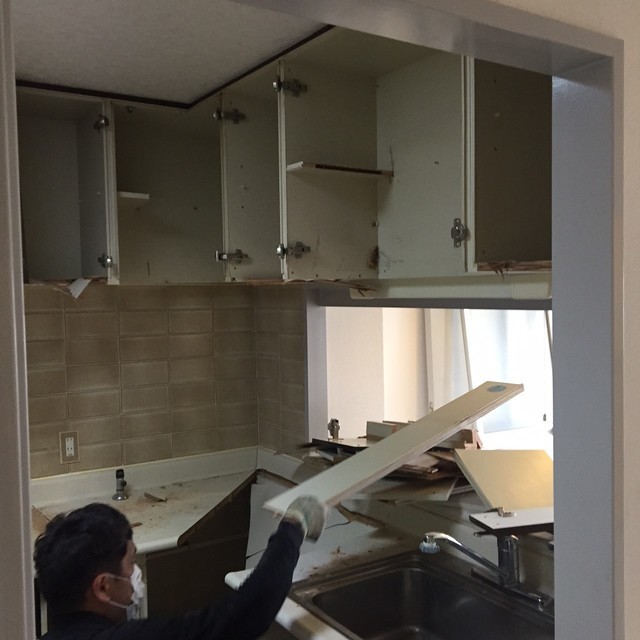 キッチンからリビングへの開放感が抜群です☆シンク上にあった吊戸棚は撤去しました。
