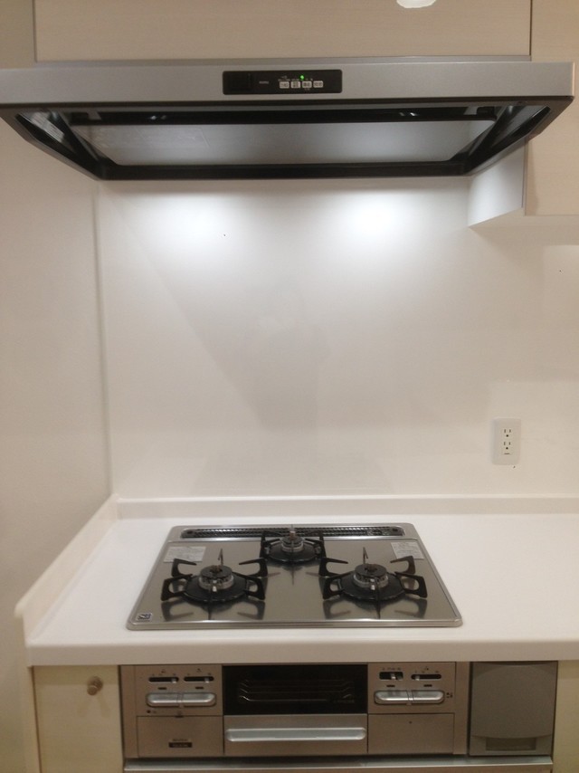レンジフードはフィルターレスなので面倒なお手入れが不要です。LED照明で調理中の手元を明るく照らしてくれます。
