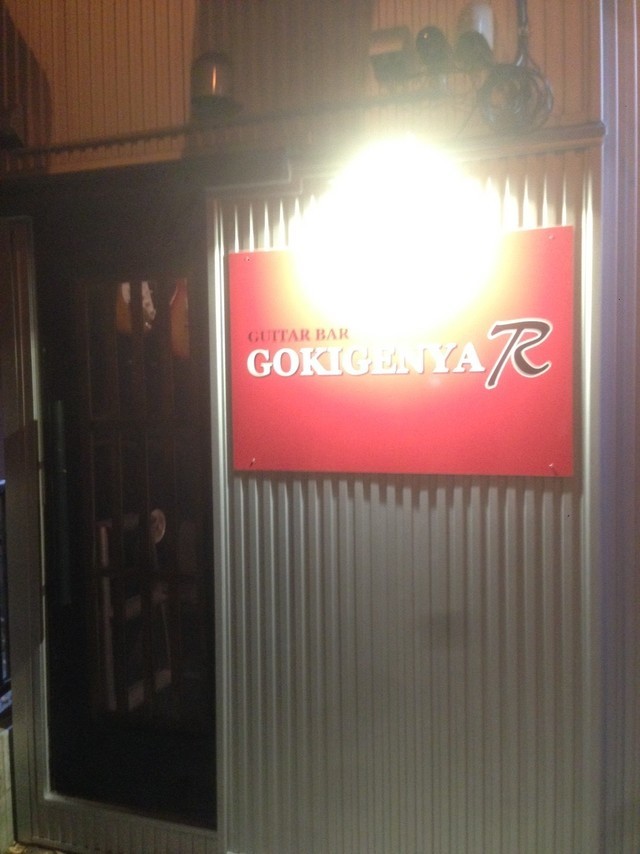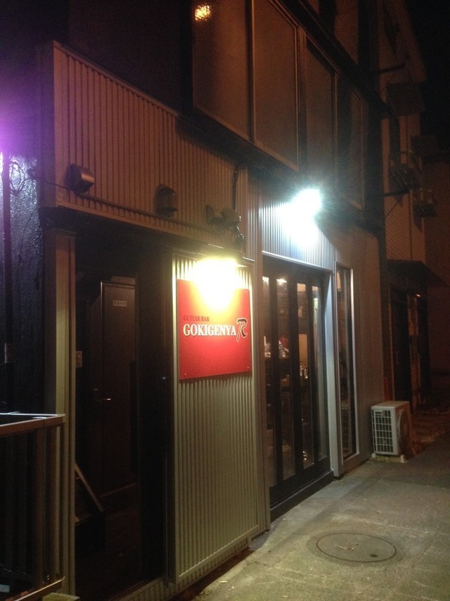 カッコ良い楽器が真っ赤な壁に飾られているとてもオシャレ内装です♪