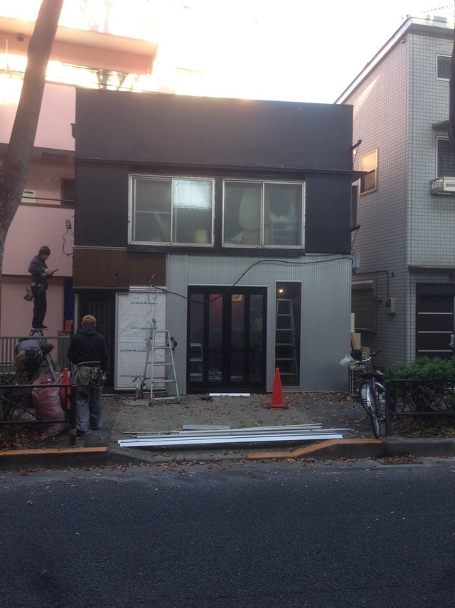 もともとの既存の店舗は串かつ屋さんでしたが、こちらに新しくBarをオープンされるとの事で、1階部分の外壁を、シルバーのガルバリウム鋼板にて仕上げたいとのご要望でした。完成がとても楽しみです。