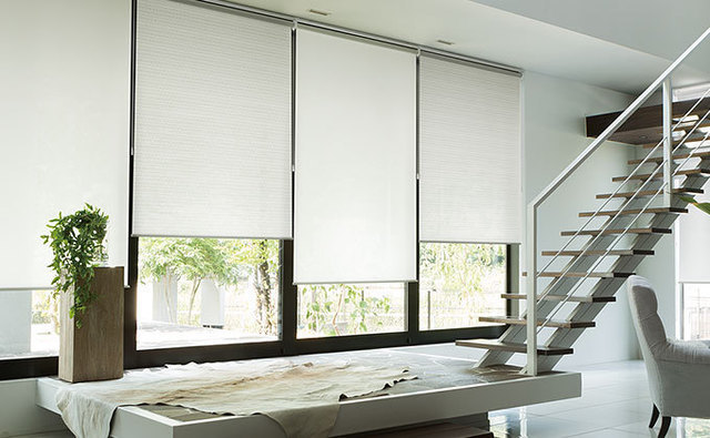 ロールスクリーンと同じように上部に収納できるので、カーテンに比べて部屋がスッキリ見えます。