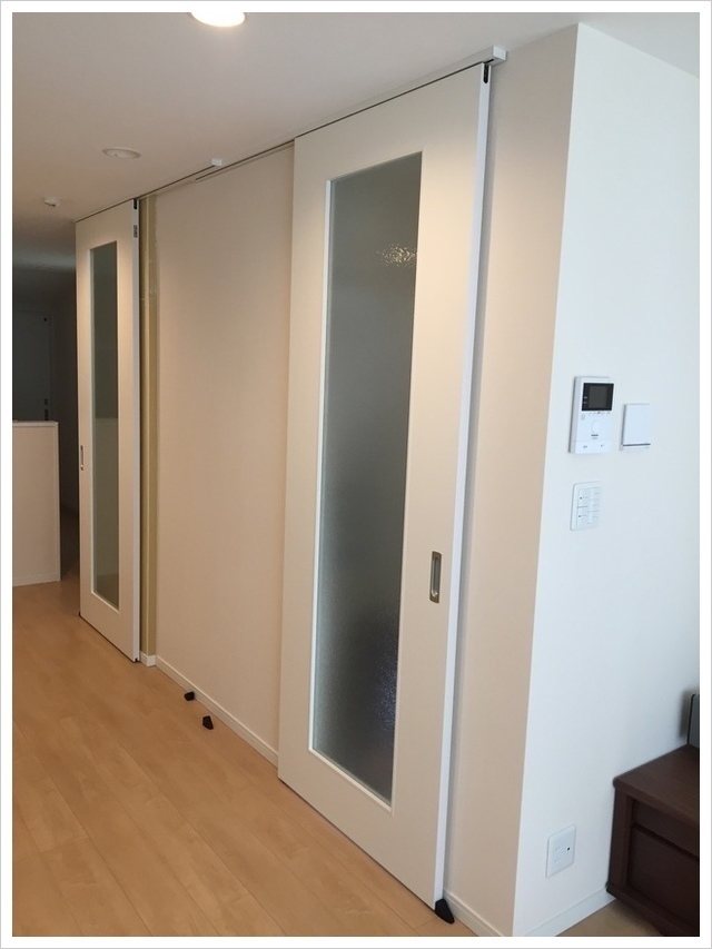 冷暖房効率やデザイン面からも扉の取り付けをご希望されておりましたので、それぞれにスペースもとらないデザイン性の高い引き戸をご提案させていただきました。