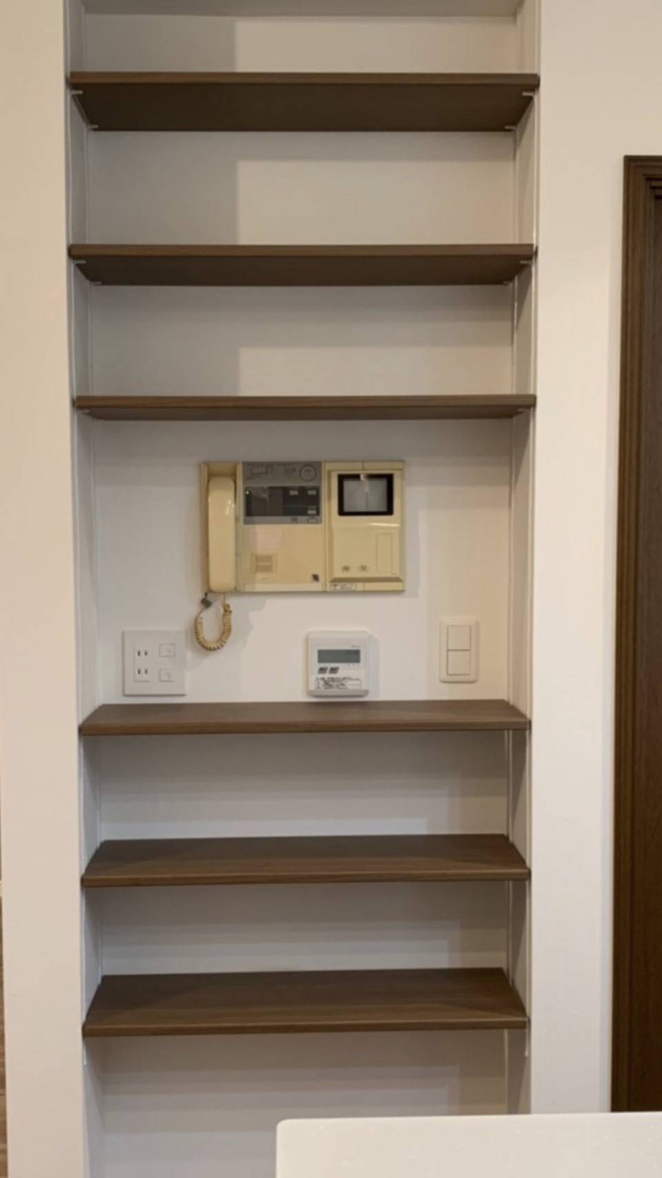又、インターホン部分の空スペースに可動棚を設置しました!