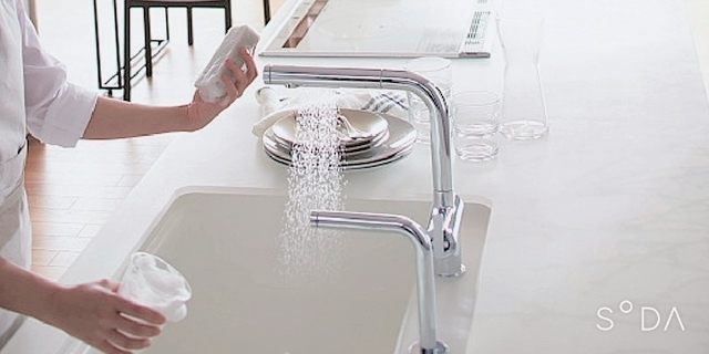 シンクの底に3度の傾斜を設定し、ごみがすべり台を