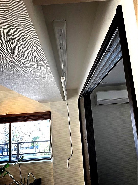 使わない時は天井についているBOXに竿をしまうことが出来