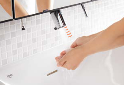 手を差し出すだけで水が出る、自動吐水機能で