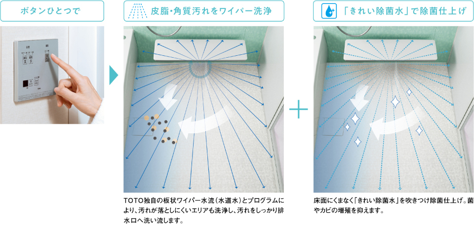 また、床ワイパー洗浄+お掃除浴槽でさらにキレイで