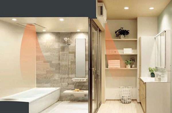 入浴を快適にしてくれたり、雨の日や花粉の季節には洗濯物の乾燥にとても重宝します。厚さがスリムになり、天井の見た目もスッキリとしています。