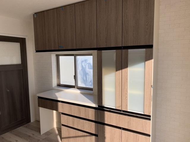 扉カラーは数多くあるバリエーションの中でもオーク系(ナチュラルオーク、ホワイトオーク、スモークオーク、ライトオーク、ショコラオーク、ラフオーク)の中からスモークオーク(DL)をお選びいただきました。