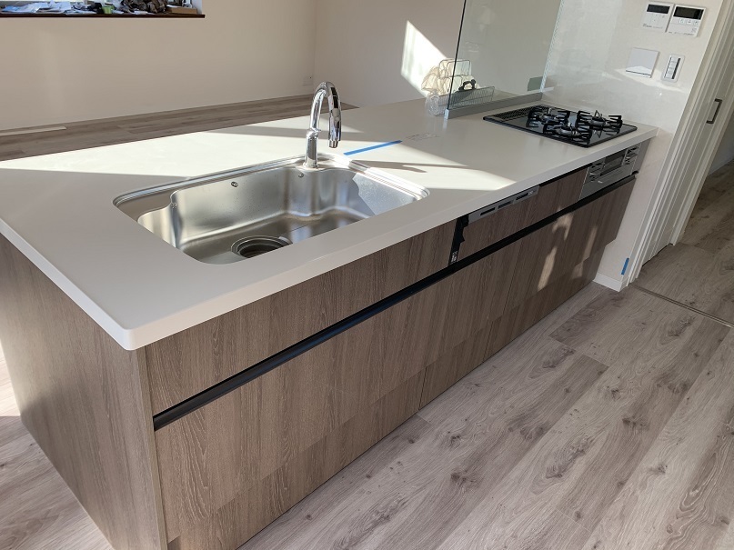 シンクはナイアガラフロー方式の採用されたスキットシンクで深さは約19.5㎝になり、水栓の位置は左右で選ぶことが出来ます。今回は右をお選びいただきました!