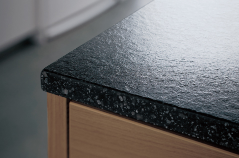 Lクラスキッチンのグラリオカウンターは、上質感のあるスゴピカ素材(有機ガラス系)で天然石の特徴である