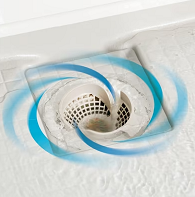 シャワーなどの排水時に渦を起こして、髪の毛やごみを