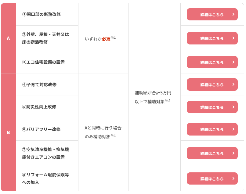 その中でも、リフォームをする際に、どんな工事が対象になるのか