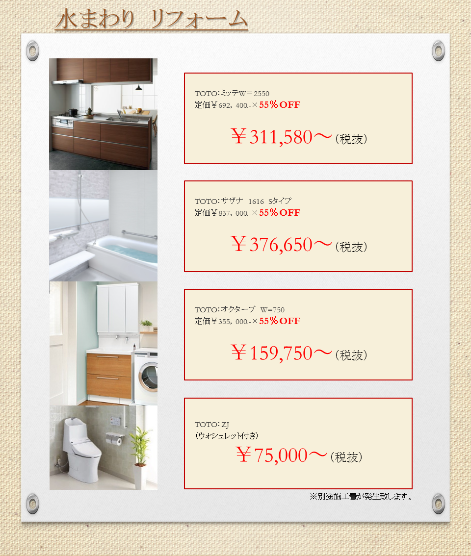 ¥380,820.-~ ※別途施工費が発生致します。 |