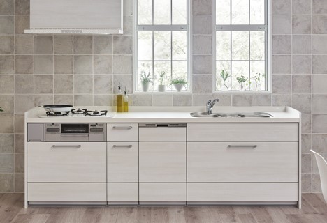 ナチュラルな淡い木目のキッチンで、お手持ちの家具とも良くなじみます。
