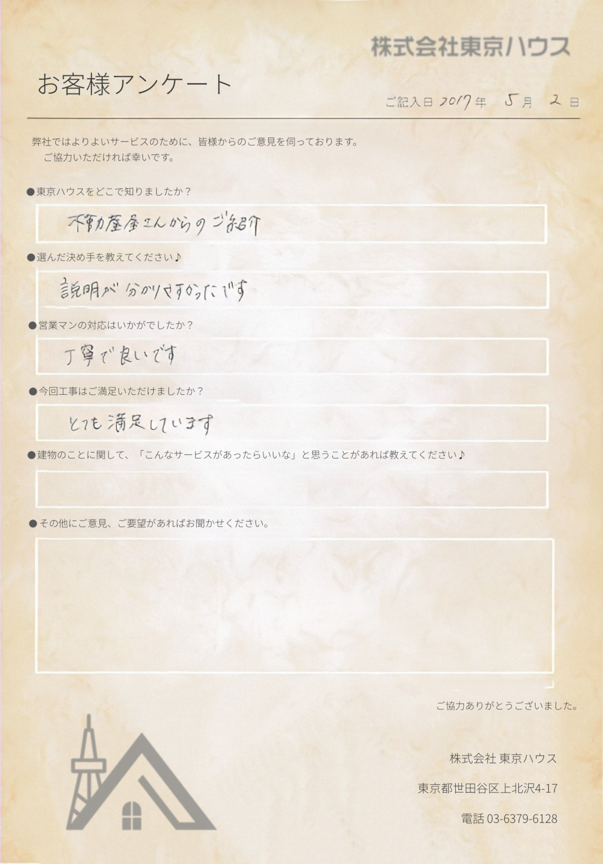 城西ハウスにお任せ下さった皆様より”VOICE”お客様の声を頂きました。