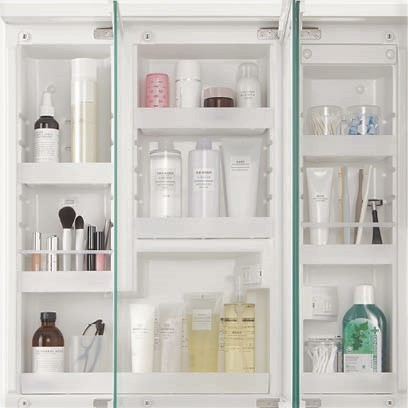 LIXILのピアラは扉裏ポケット・三面鏡トレイアレンジ・仕切りトレイ・トールキャビネットの収納アイテムで賢くコンパクトに